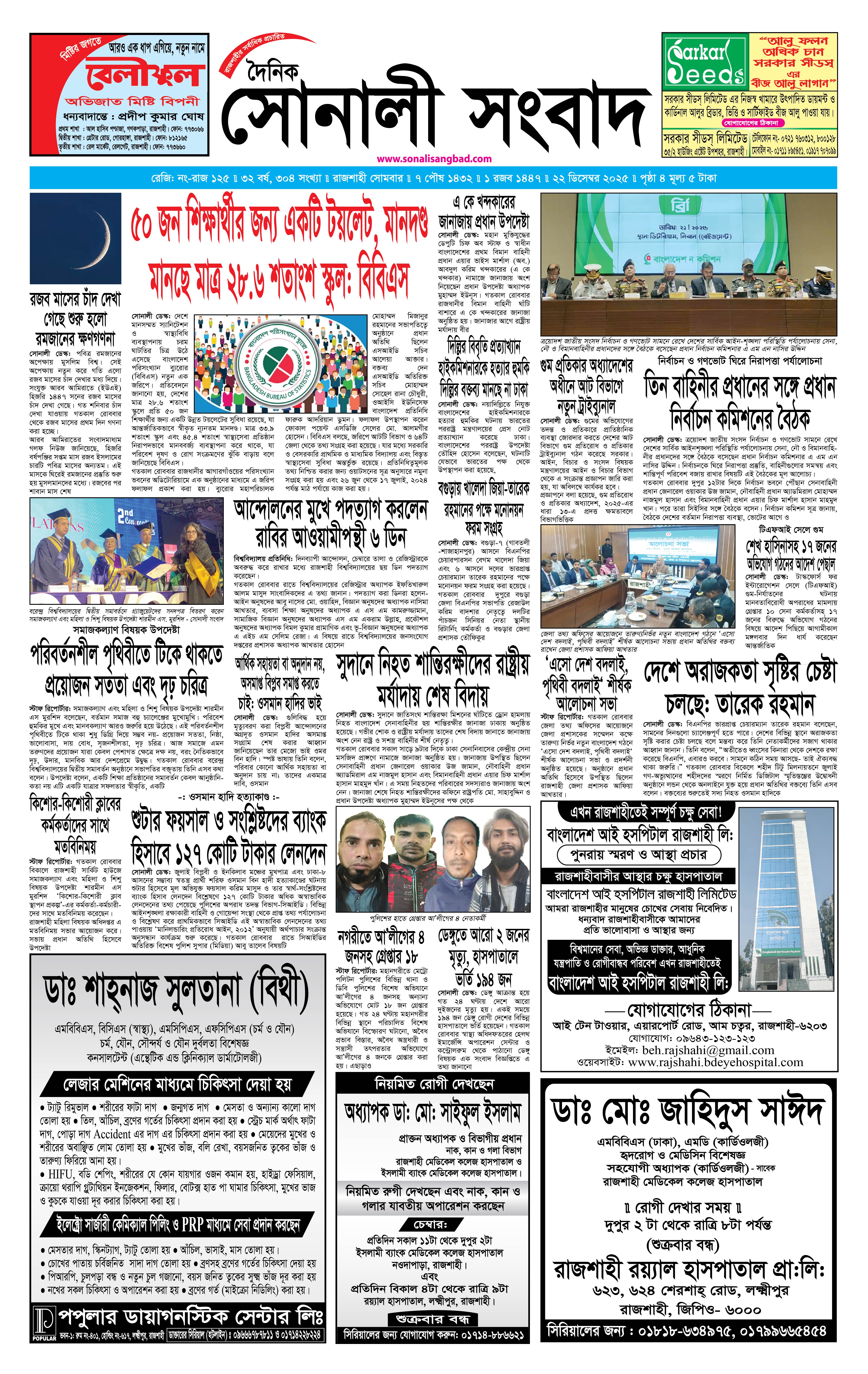 ঢাকা | ডিসেম্বর ২২, ২০২৫ - ৫:১৭ পূর্বাহ্ন