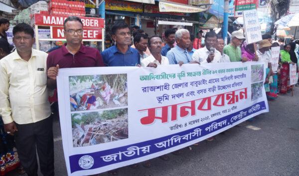 আদিবাসী পরিবার উচ্ছেদের প্রতিবাদে নগরীতে মানববন্ধন