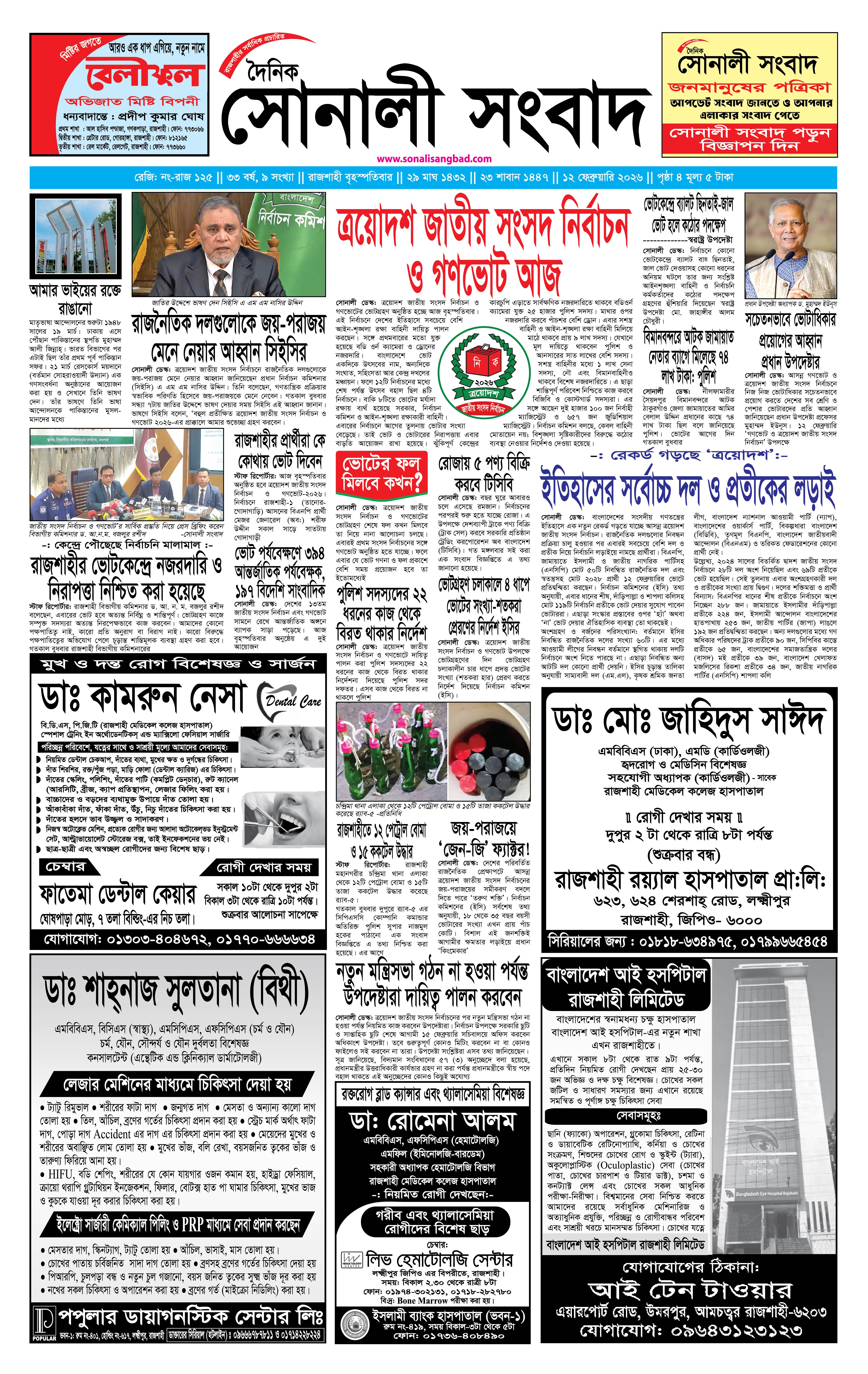 ঢাকা | ফেব্রুয়ারী ১২, ২০২৬ - ২:৪৯ পূর্বাহ্ন